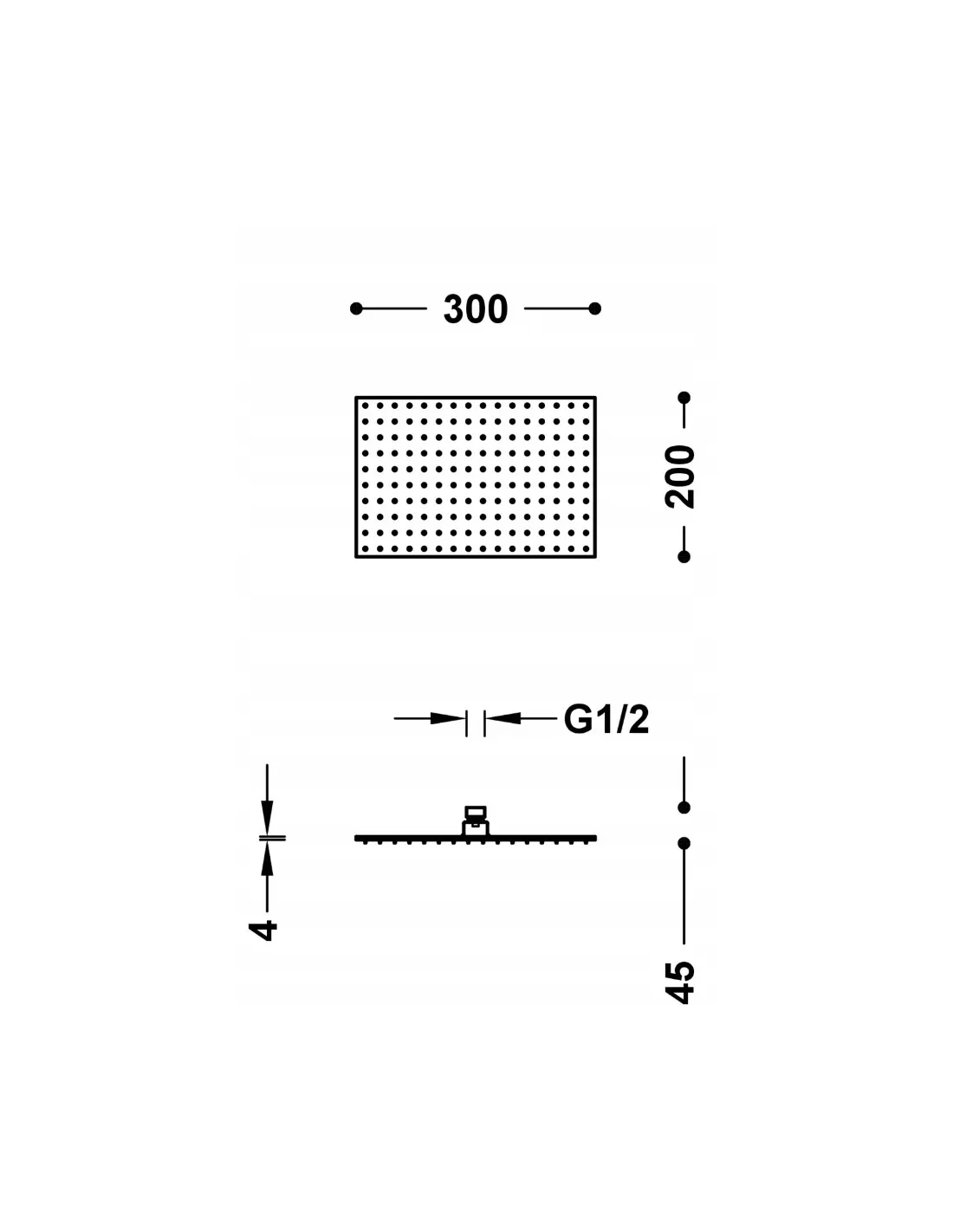 Wyjątkowo cienki profil: 4 mm. Wymiary: 300x200 mm. Regulowany przegub. Materiał: Stal nierdzewna. Dysze antyosadowe.