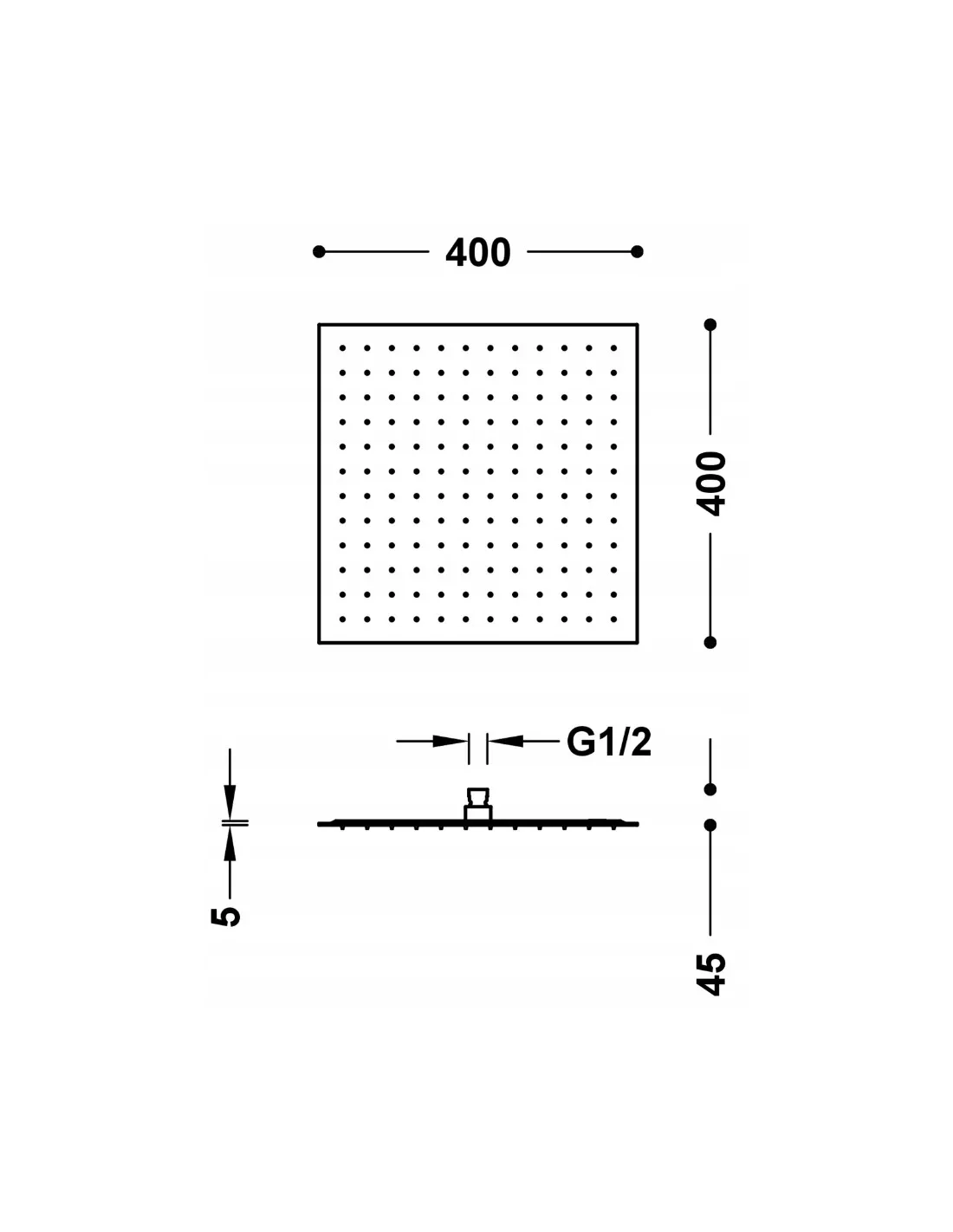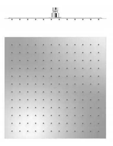 Wymiary: 400x400 mm. Regulowany przegub. Materiał: Stal nierdzewna. Zawiera zawór bezpieczeństwa z membraną. Dysze antyosadowe.
