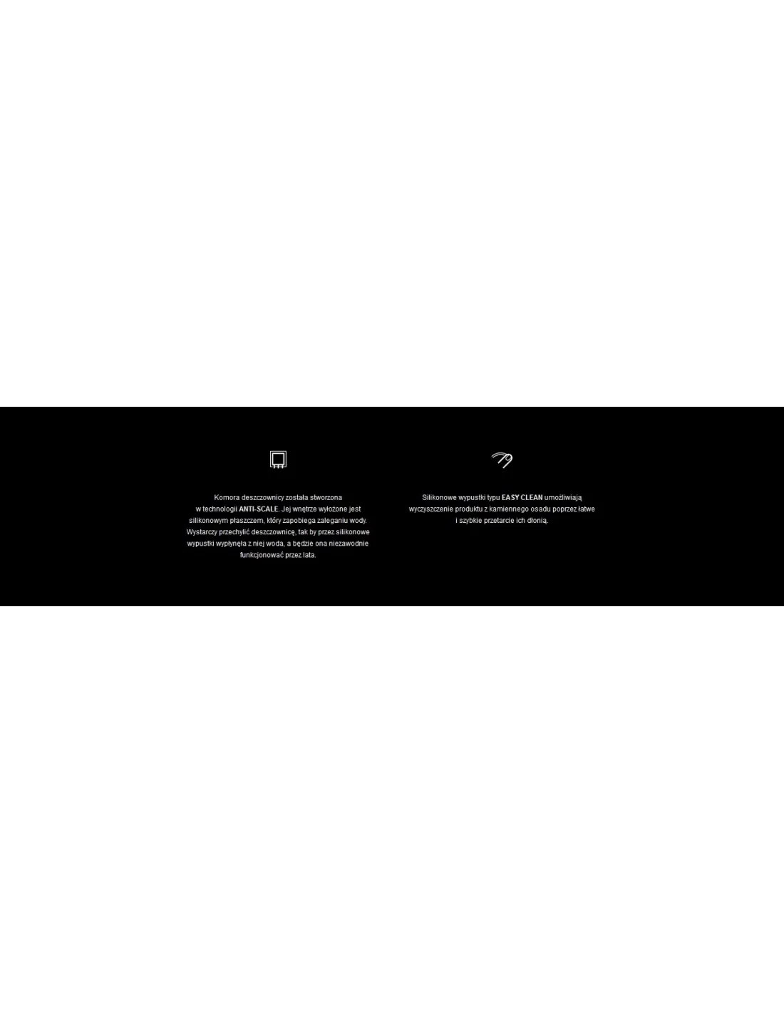Silikonowe wypustki typu EASY CLEAN umożliwiają wyczyszczenie produktu z kamiennego osadu poprzez łatwe i szybkie przetarcie ich dłonią.