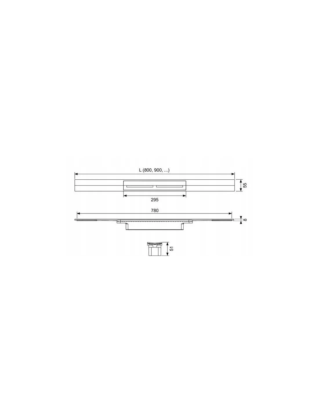 - profilu prysznicowego ze stali nierdzewnej - możliwego do przycięcia na długość - z wewnętrznym spadkiem odpływu wody i efektem samooczyszczania, materiał 1.4301 (304)