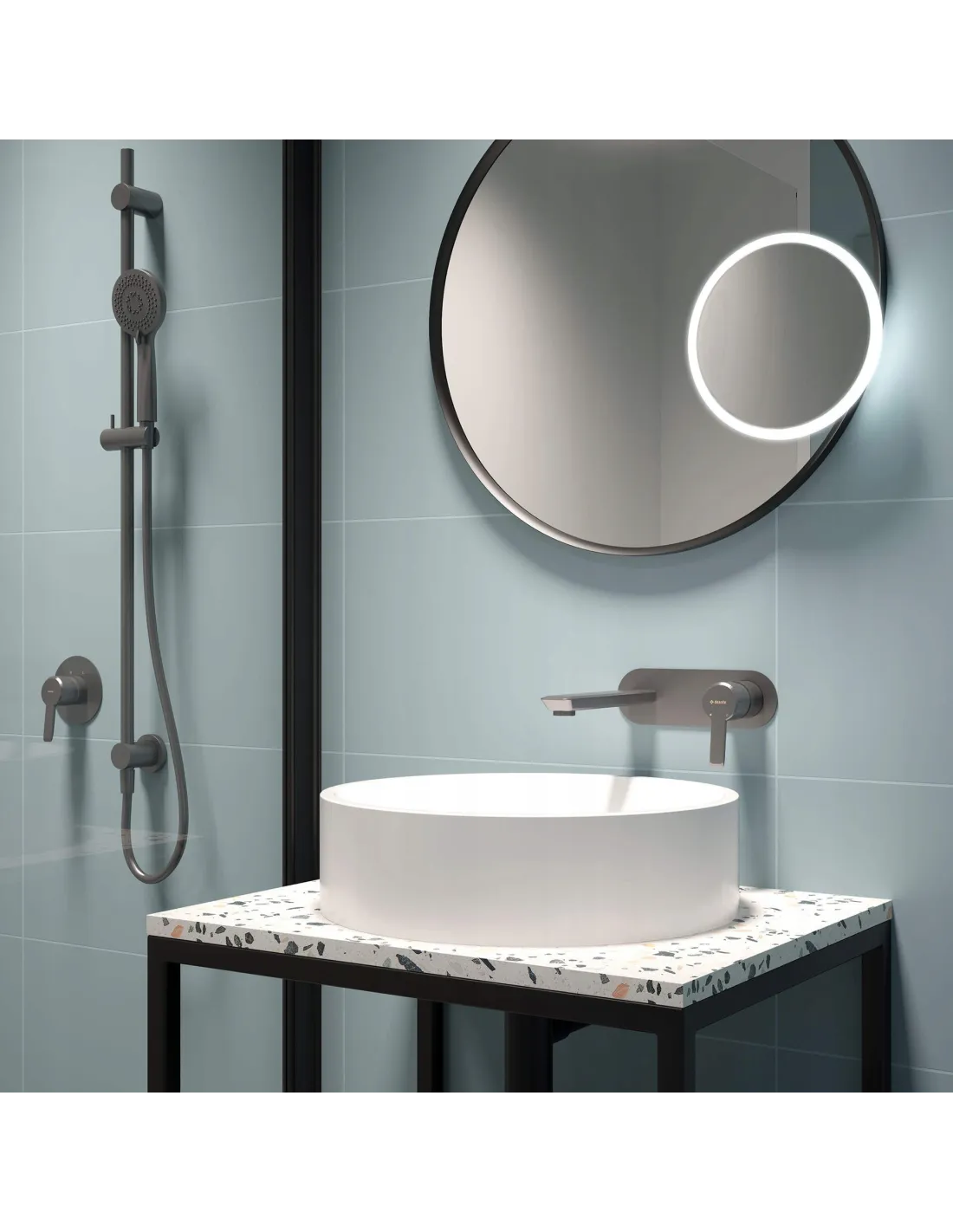 Podtynkowa bateria umywalkowa Arnika Titanium to doskonały przykład połączenia delikatnych, obłych kształtów z ciekawą kolorystyką. Jak wszystkie produkty z linii Arnika Titanium, bateria ma ciemny, przyjemny dla oka odcień matowej, grafitowej stali, który odpowiada współczesnym trendom kolorów ziemi. Ta podtynkowa bateria umywalkowa charakteryzuje się ponadto wygodną dźwignią mieszacza oraz wylewką z silikonowym aeratorem napowietrzającym krople i redukującym zużycie wody, a przede wszystkim ułatwiającym czyszczenie baterii z osadów wapiennych.