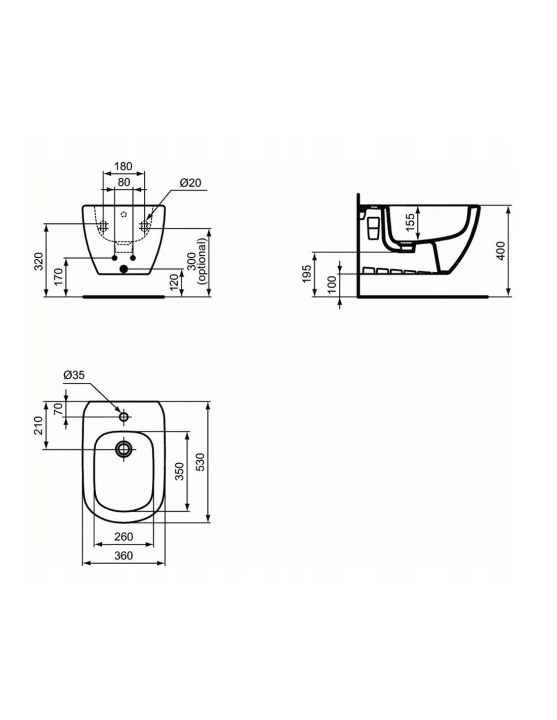 Bidet podwieszany prostokątny Ideal Standard T457001