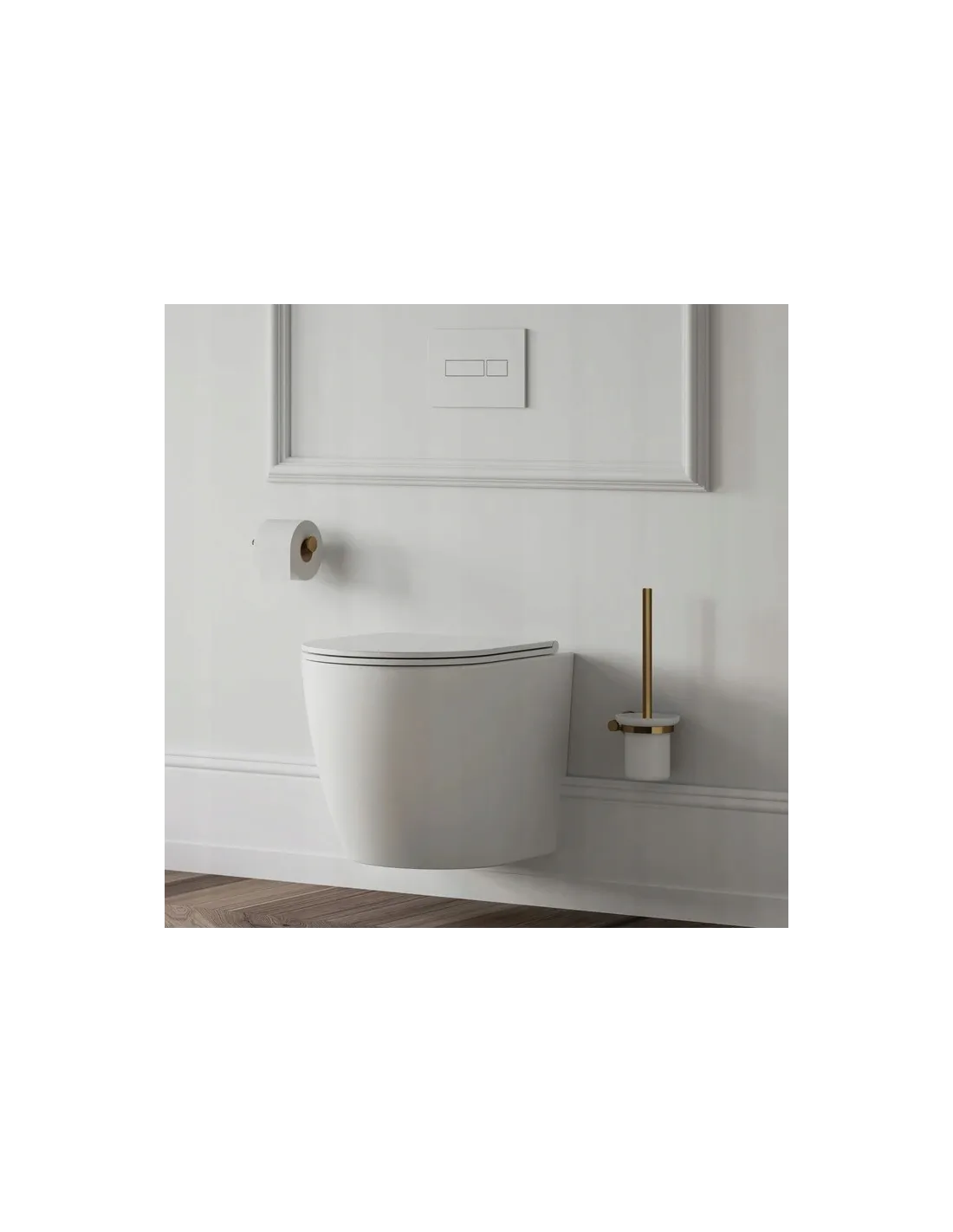 Bezkołnierzowa miska toaletowa OMNIRES OTTAWA wyróżnia się pełnym, organicznym kształtem. Delikatnie zaokrąglona bryła, przełamana precyzyjną linią deski wolnoopadającej, tworzy z nią idealnie dopasowaną, harmonijną całość. Niewielkie, dyskretne rozety o minimalistycznej formie dodatkowo ułatwiają czyszczenie w obrębie mocowań deski.