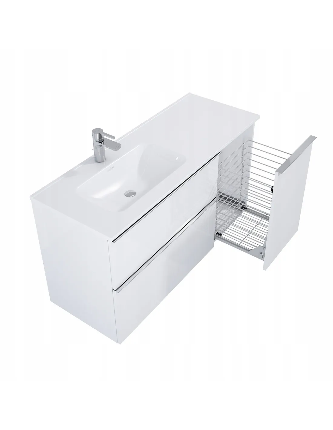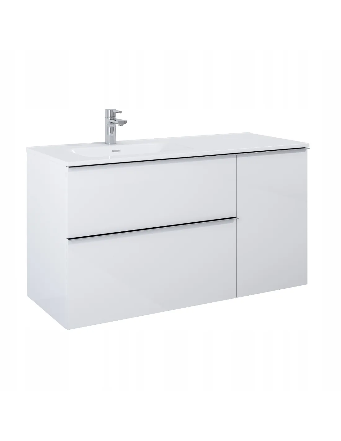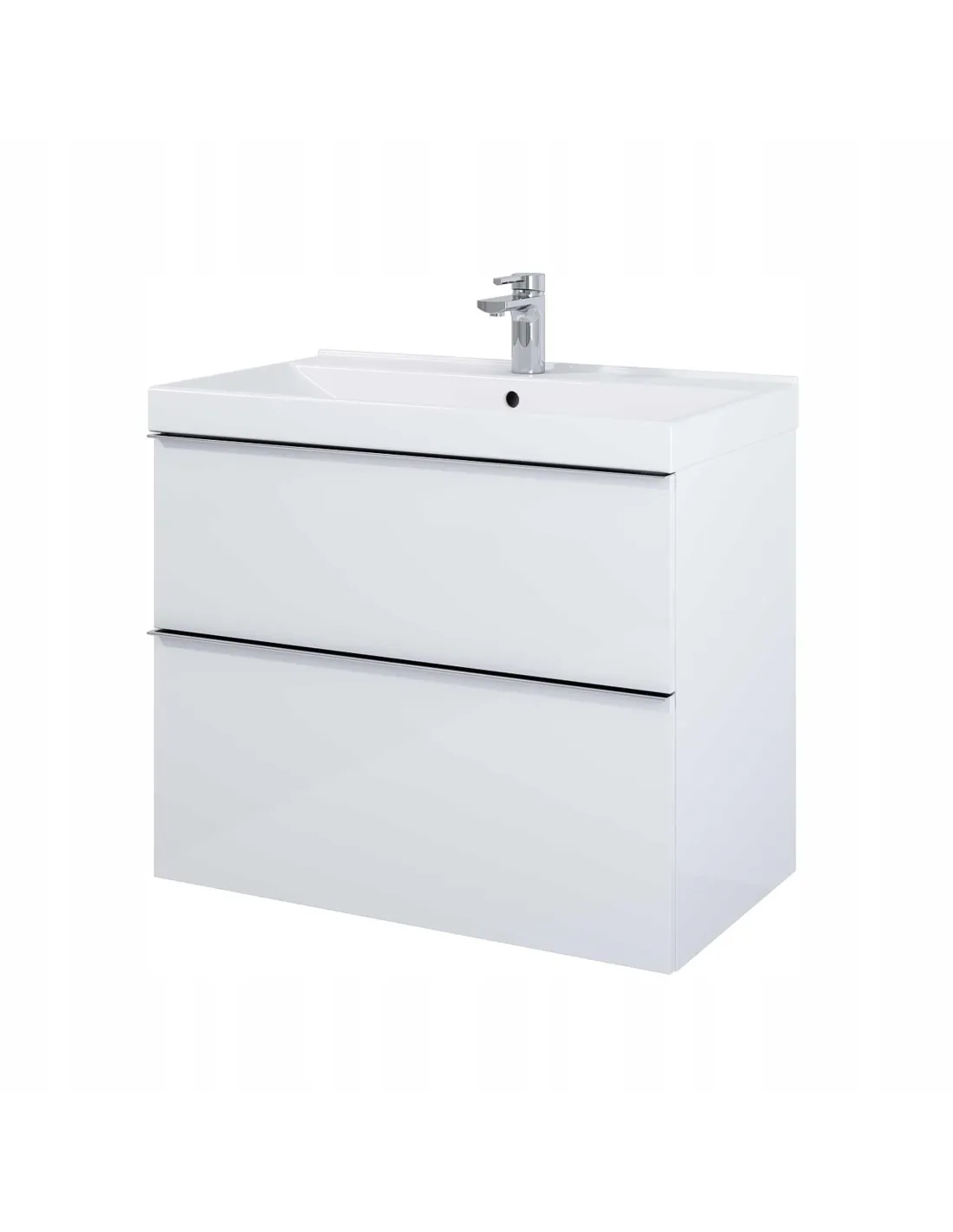 Produkt o rozmiarze 800 x 449 x 635 (mm), którego front oraz korpus wykonany z płyty laminowanej w odcieniu biały matt. Wyposażony w 2 szuflady z pełnym wysuwem. Nowoczesna szafka nada innowacyjny wygląd Twojej przestrzeni.