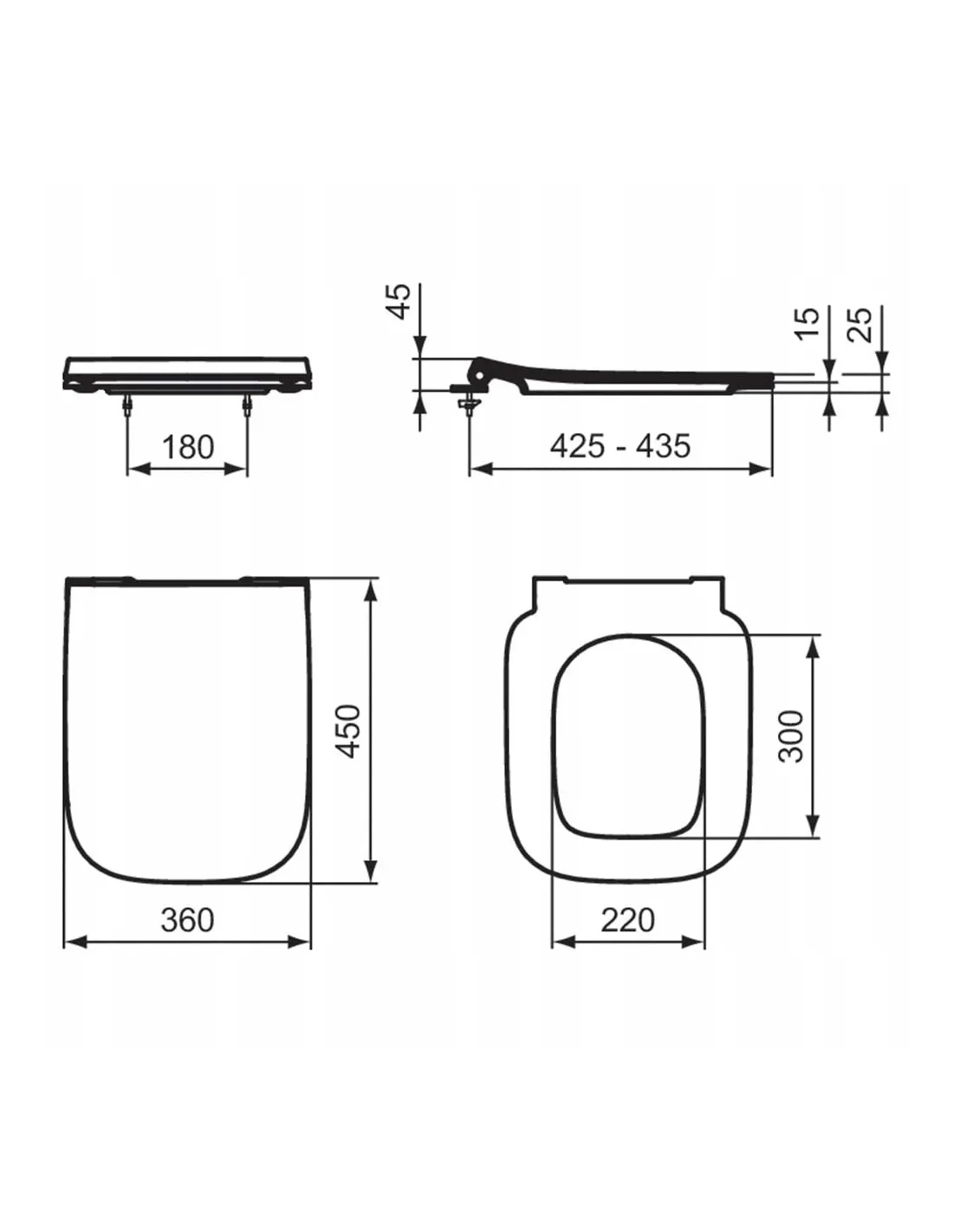 • punkt znaku wypunktowania: Regulowane zawiasy ze stali nierdzewnej, System szybkiego uwalniania i spowolnione zamknięcie, Trwałe materiały, Designed slim by Studio Palomba Serafini Associates, Oryginalny Ideal Standard