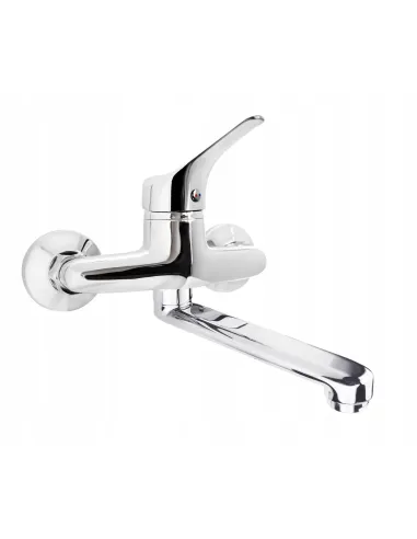 Bateria chromowana wyróżnia się prostą, łatwą w obsłudze konstrukcją i estetyczną formą. Wylewka posiada kran o długości 214 mm i wytrzymałą głowicę o szerokości 40 mm. Urządzenie jest odporne na uszkodzenia mechaniczne, wysokie ciśnienie i zmienną temperaturę wody. Gładka powierzchnia ułatwia czyszczenie. Dodatkową zaletą produktu jest opcja napowietrzania strumienia wody.