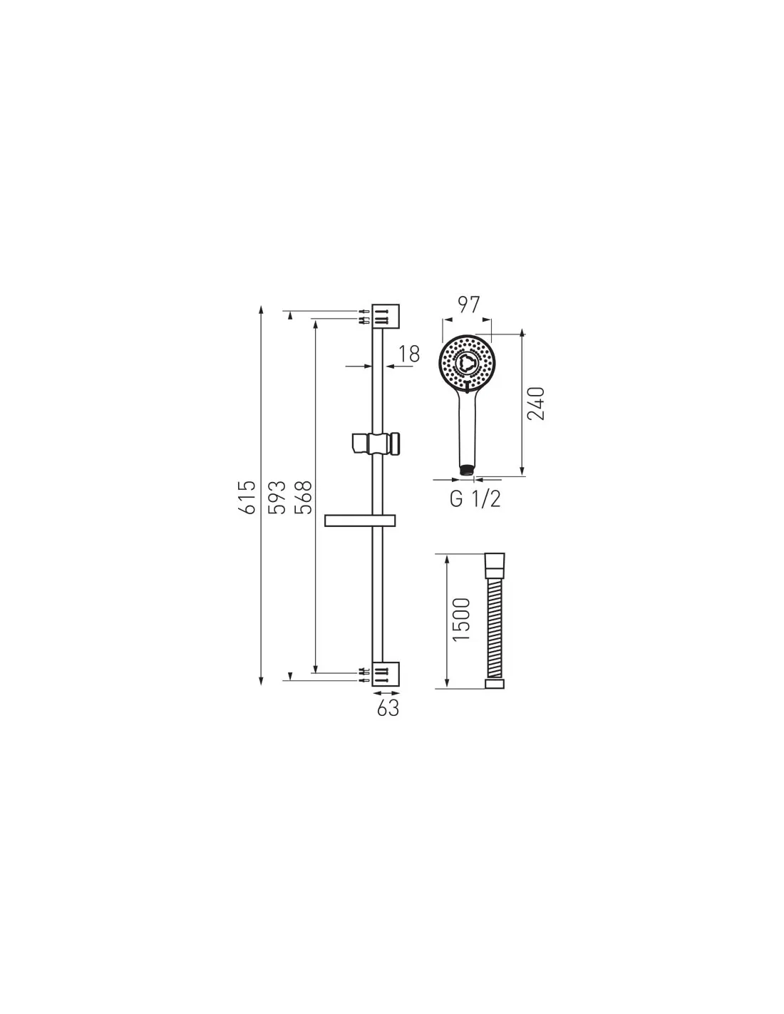 • W zestawie: słuchawka prysznicowa, drążek prysznicowy, mydelniczka