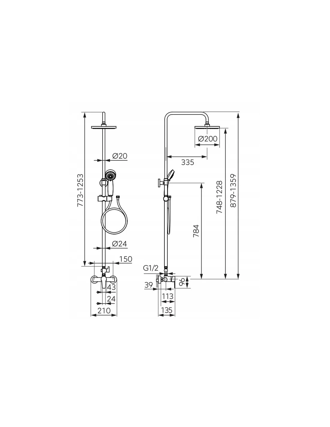 • Wysokość drążka deszczowni [mm]: 773 - 1253