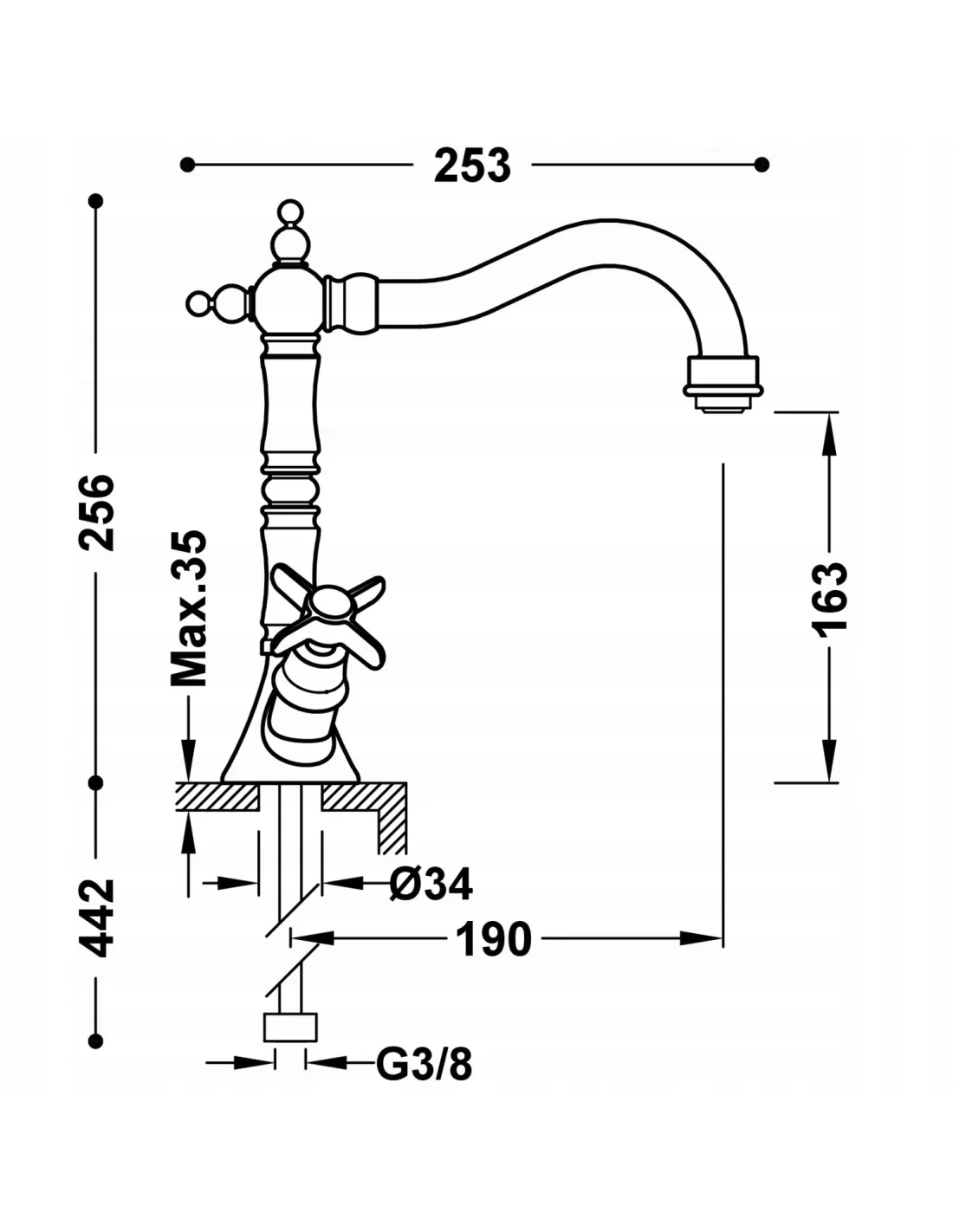 • wysokość wypływu wody: 16,3 cm