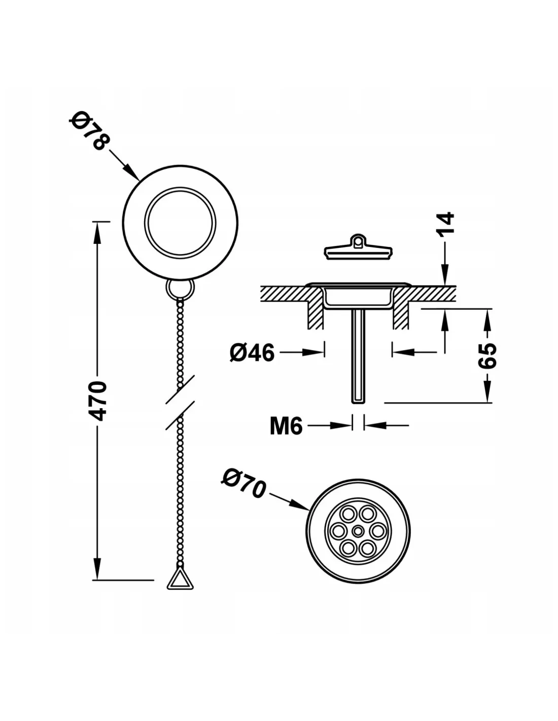Sitko do odpływu z zestawem montażowym, łańcuszkiem i zatyczką do wanny TRES