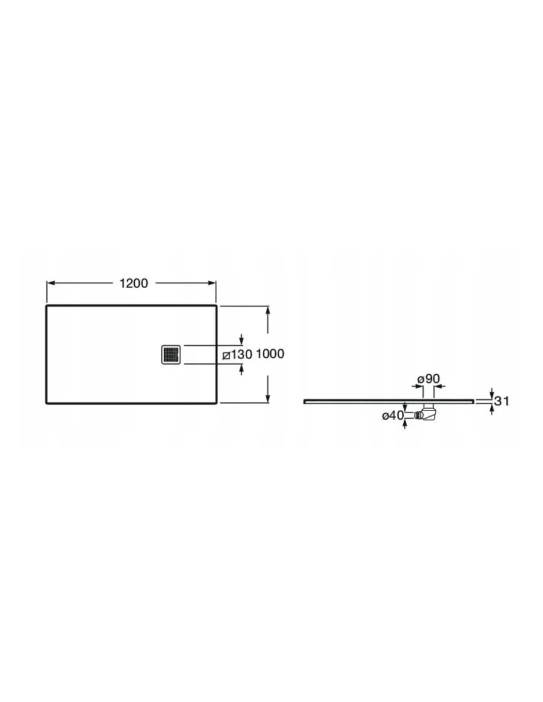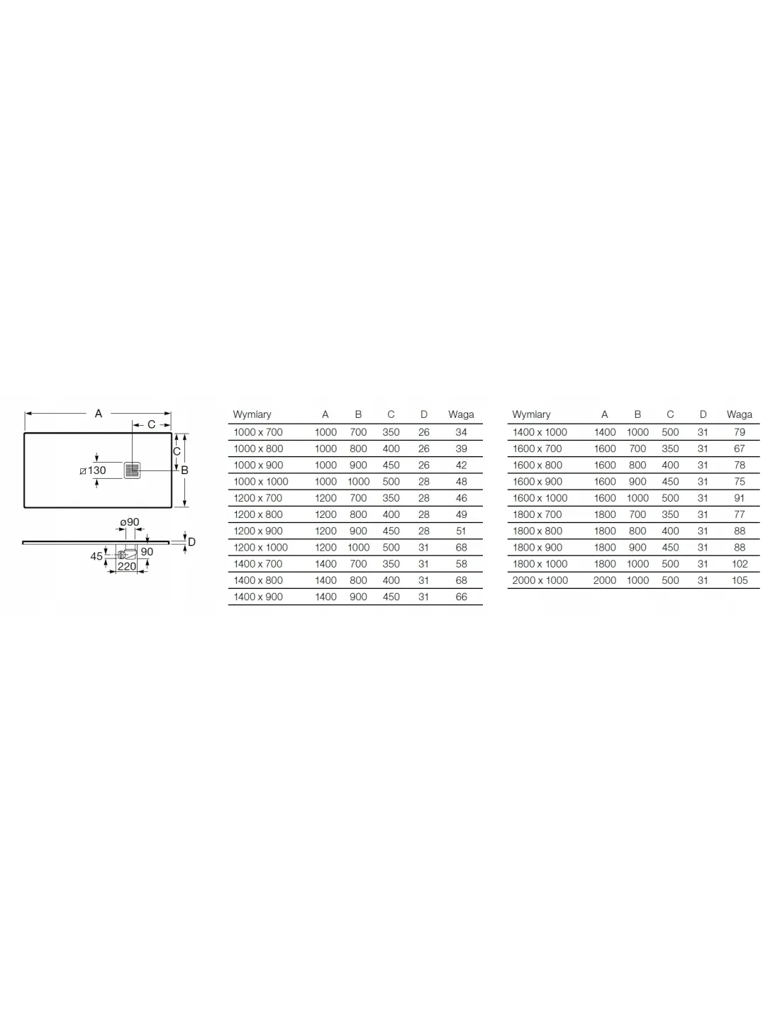 - Średnica odpływu: 90 mm