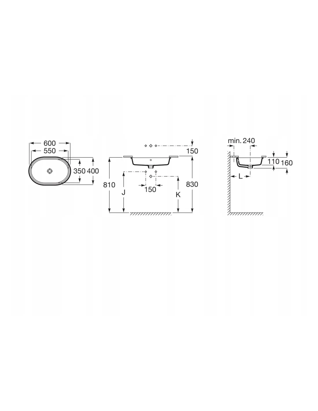 GAP umywalka ceramiczna podblatowa prostokątny bez otworu z przelewem 550 x 350 x 160 mm biała bez powłoki