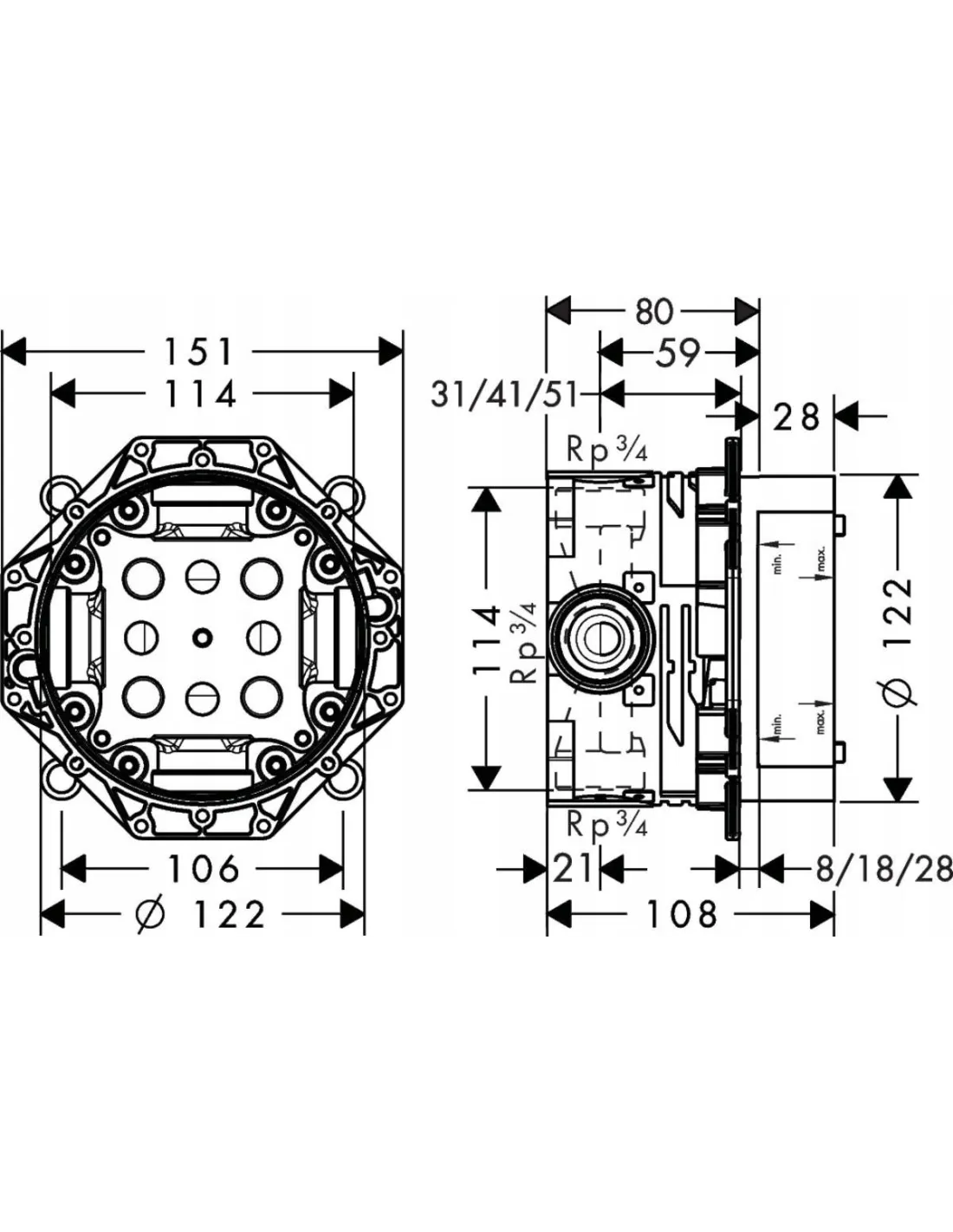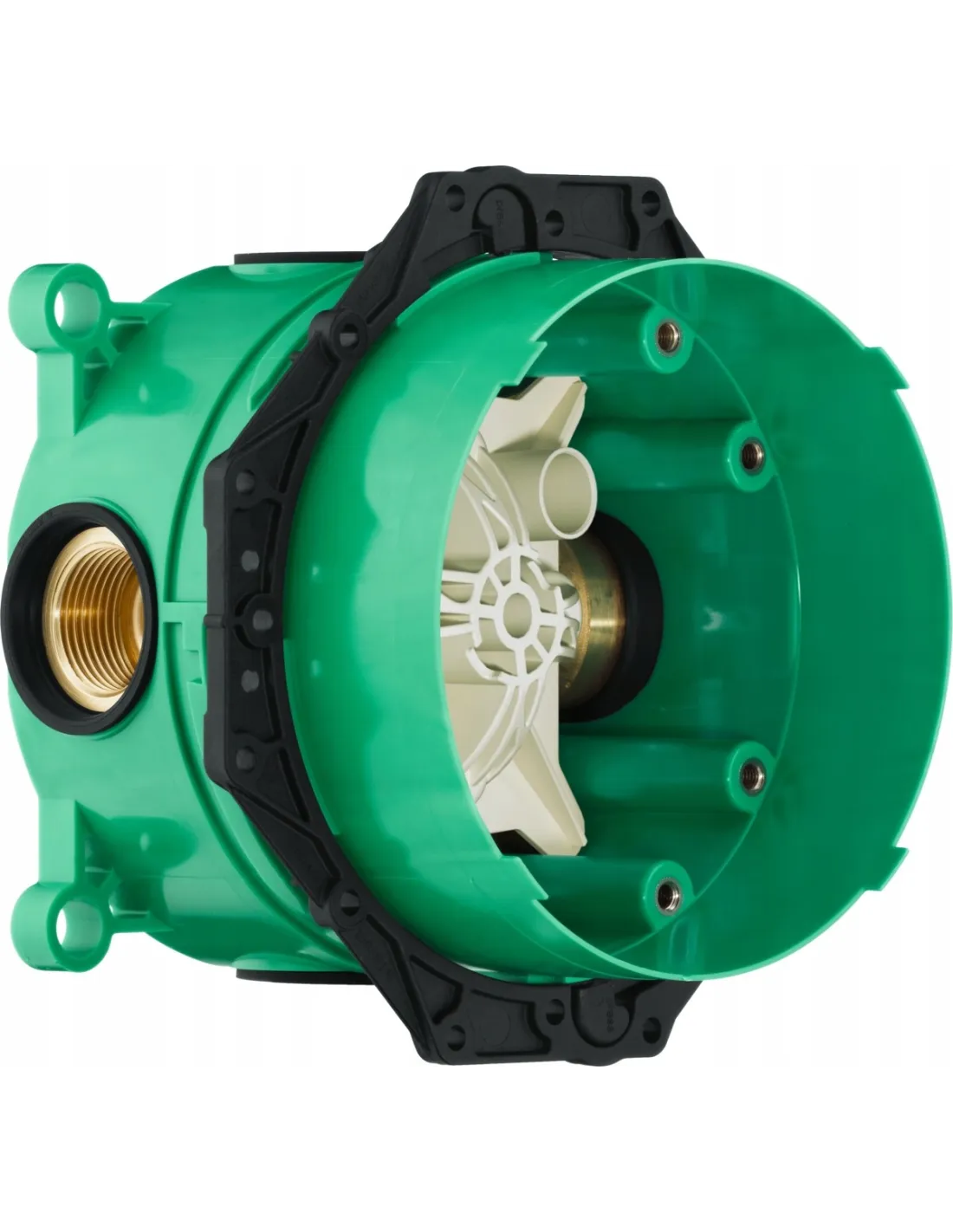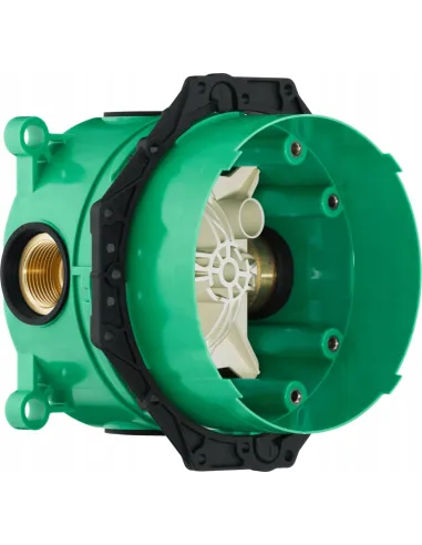Hansgrohe iBox podtynkowy element renomowanej marki Hansgrohe został przystosowany do instalacji różnego rodzaju mieszaczy podtynkowych, baterii prysznicowych, wannowych zarówno tych standardowych jak i termostatycznych z zaworem odcinającym lub bez niego. Dzięki uszczelce wygłuszającej tłumi szumy, zwiększając komfort kąpieli.