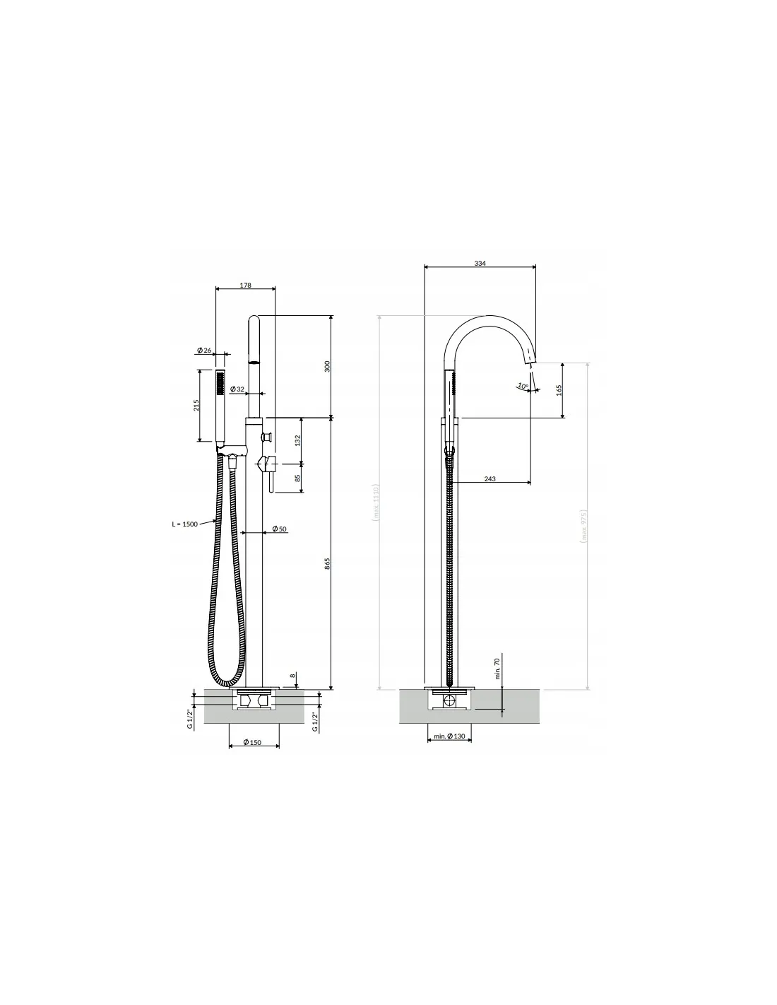 - wysokość wypływu wody: 96 cm