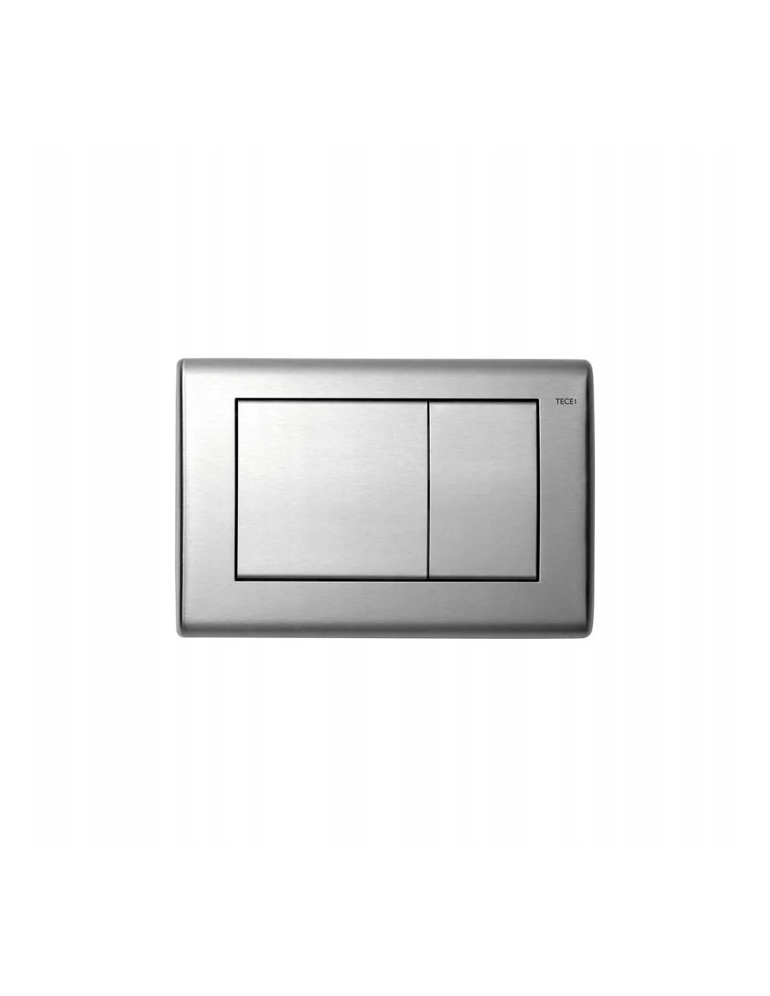 Przycisk spłukujący ze stali nierdzewnej do spłuczek TECE, uruchamiany z przodu lub od góry, przykręcany zamaskowanymi śrubami.
