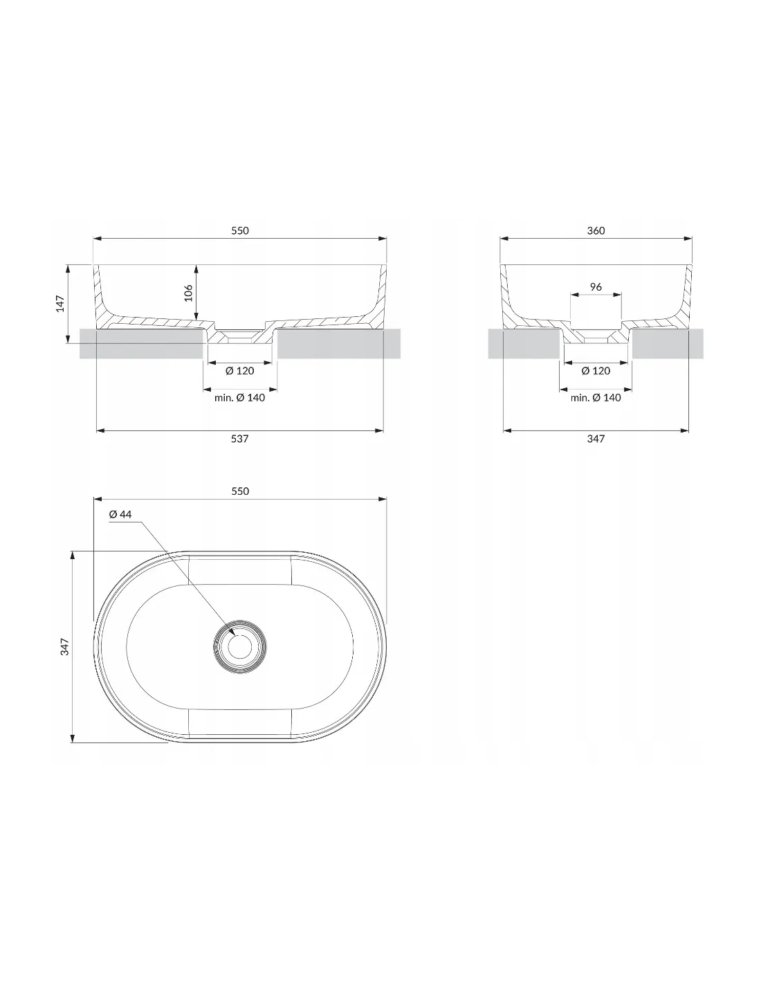 Montaż wymaga wycięcia okręgu w blacie o średnicy 140 mm