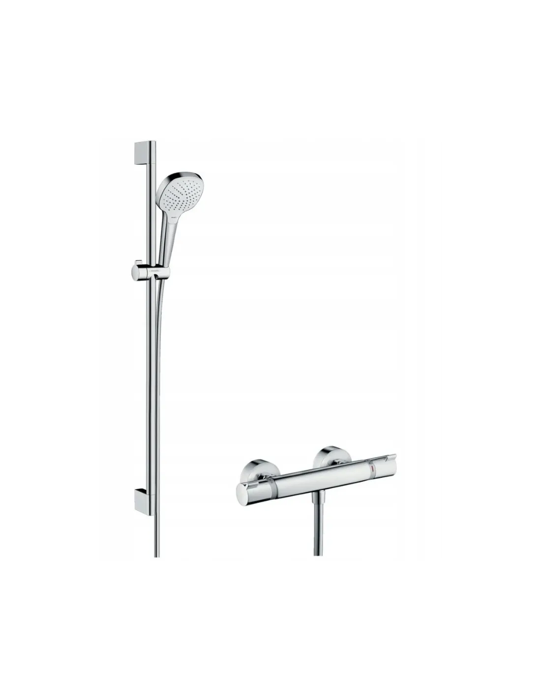 składa się z: główka prysznicowa, bateria termostatyczna, drążek prysznicowy, suwak, wąż prysznicowy