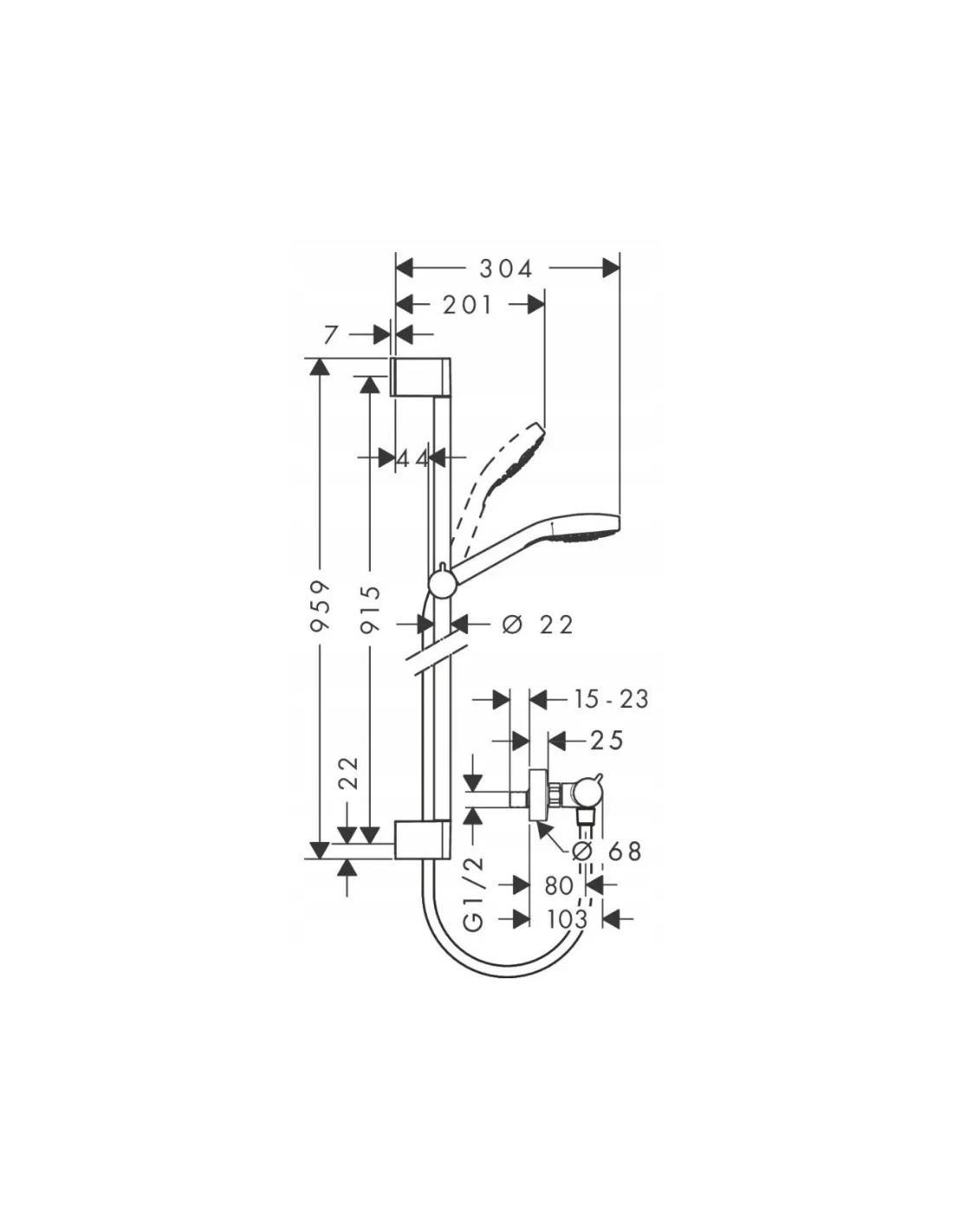 średnica drążka prysznicowego: 22 mm
