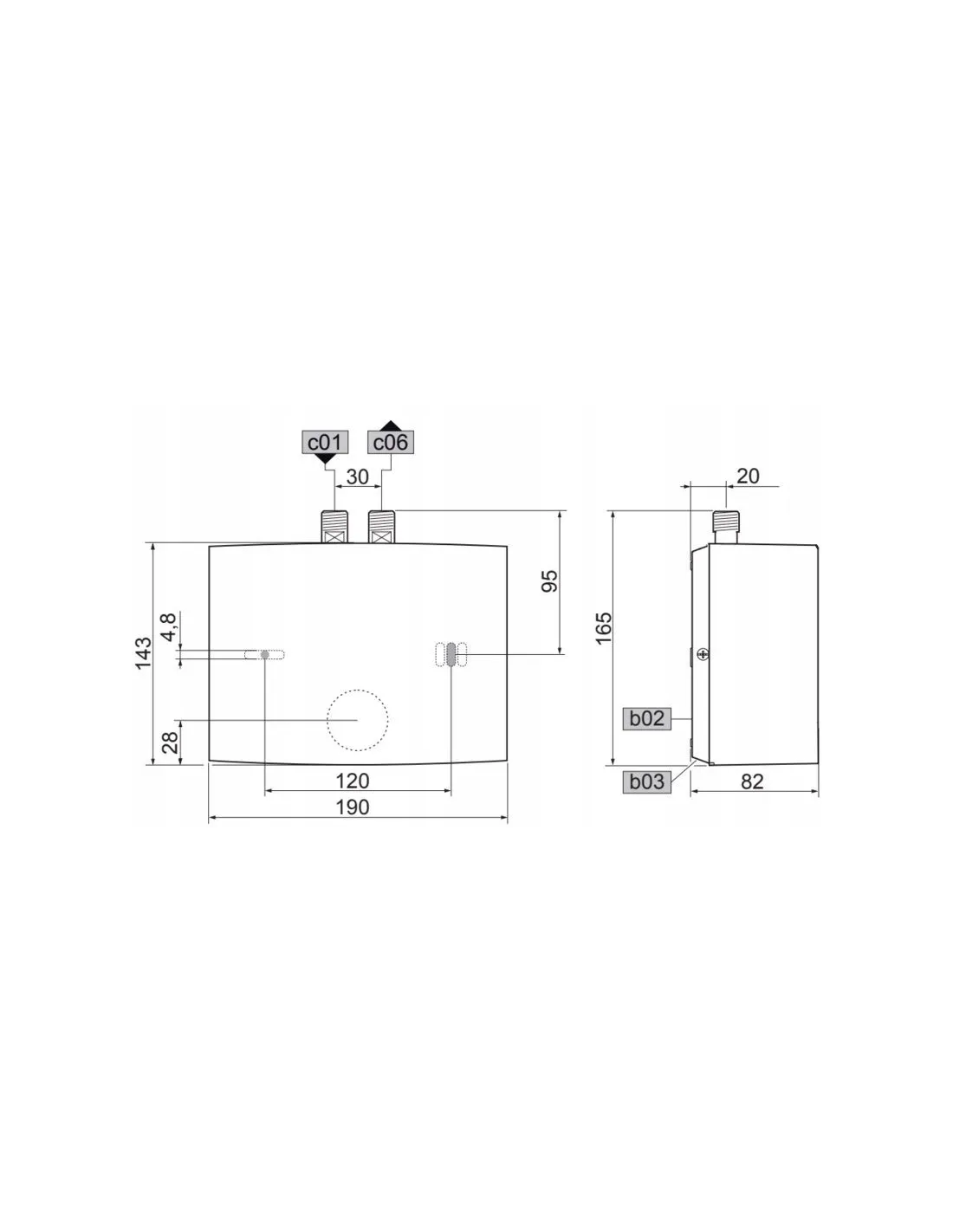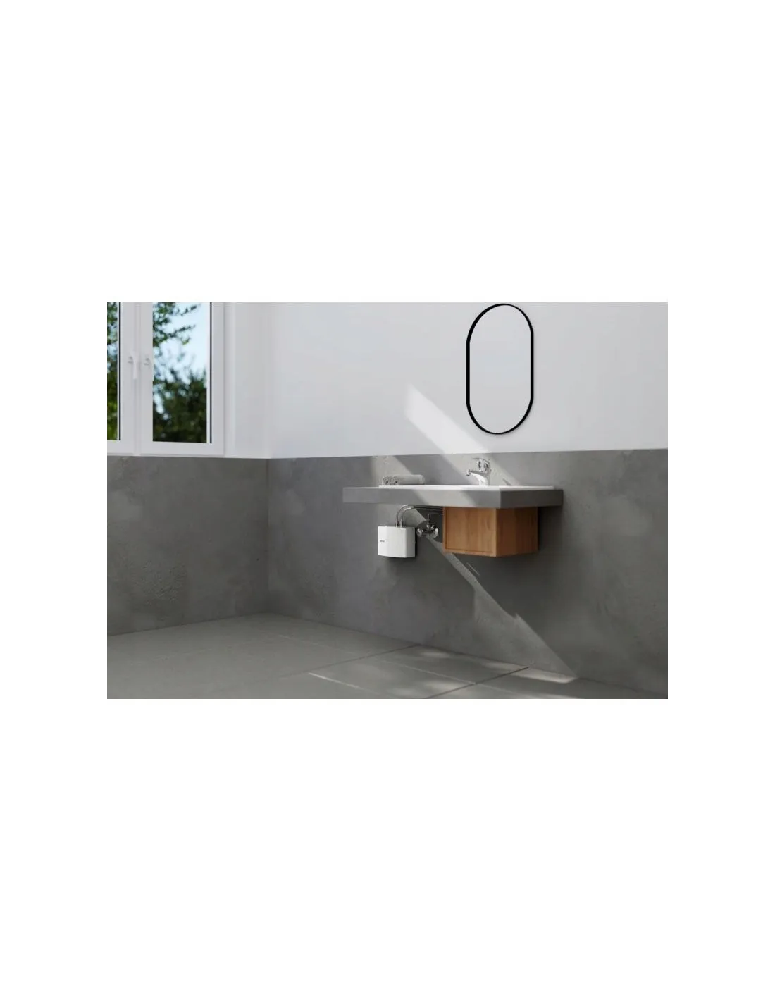 - mini przepływowy ogrzewacz wody z regulacją elektroniczną, udostępniający natychmiast ciepłą wodę użytkową w niewielkich ilościach