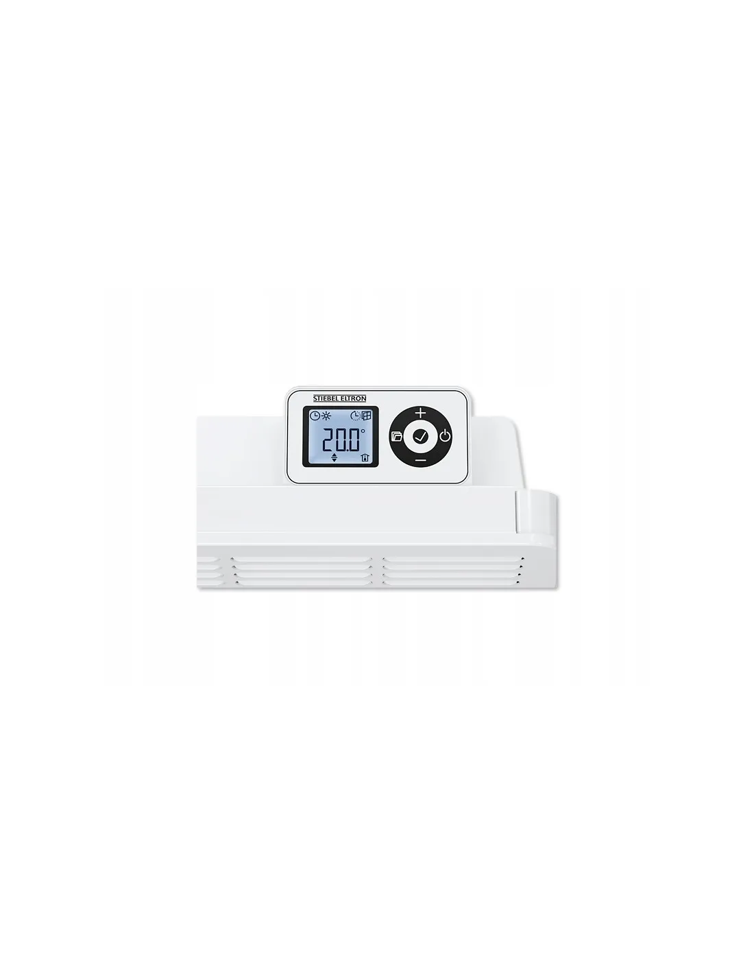 Grzejnik konwektorowy sterowany elektronicznie, wyposażony w regulator tygodniowy z wyświetlaczem LCD. Na panelu obsługowym istnieje możliwość nastawy temperatury pokojowej w zakresie + 5°C do +30°C z dokładnością co 0,5°C. Regulator tygodniowy posiada dwa wstępnie zaprogramowane tryby pracy i jeden tryb do programowania indywidualnego. Funkcja \Start adaptacyjny\ jako funkcja uczenia się w trybie programowania czasowego do zapewnienia temperatury komfortu. Oddzielnie programowalne tryb pracy: komfortowej, obniżenie nocne. Aby uniknąć niepotrzebnego zużycia energii podczas wietrzenia, przy otwartym oknie urządzenie przełącza się automatycznie na godzinę na funkcję \otwartego okna\. Konwektor przy tej funkcji utrzymuje temperaturę pomieszczenia na poziomie 7°C. Wysokiej jakości grzałka rurkowa z lamelami ze stali nierdzewnej. Wytrzymała metalowa, lakierowana obudowa. Blokada panelu obsługi przed niezamierzoną ingerencją w ustawienia.