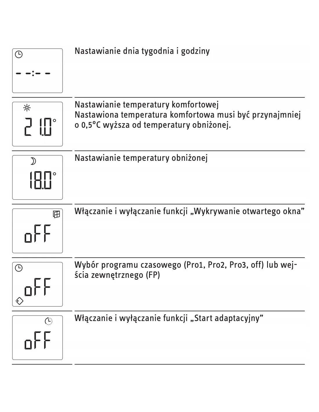 - Programator tygodniowy, zabezpieczenie przed zamarzaniem i wykrywanie otwartego okna