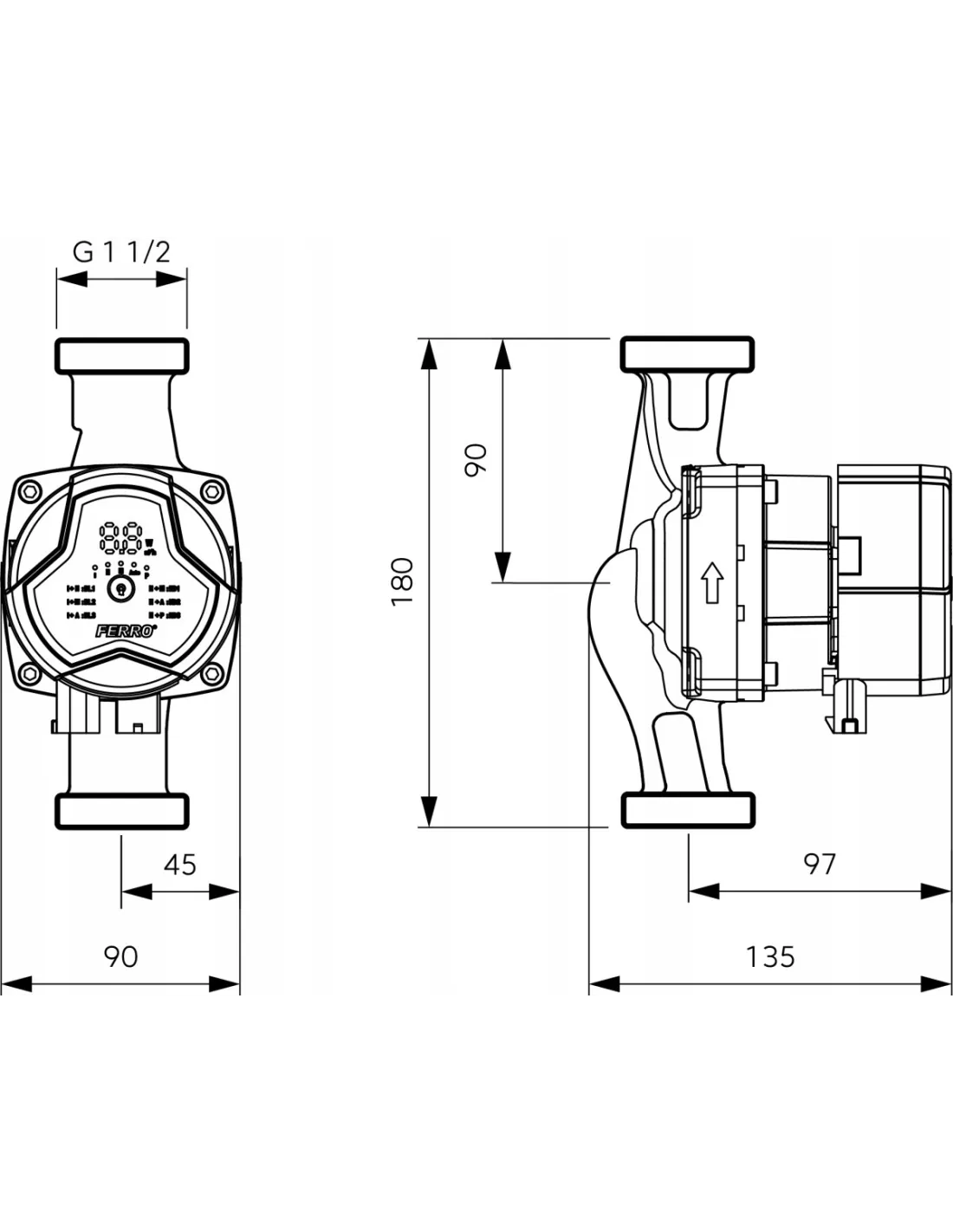 - Standardowy rozstaw 180 mm i przyłącze G 1 1/2” – szybki montaż w miejsce istniejącej pompy.