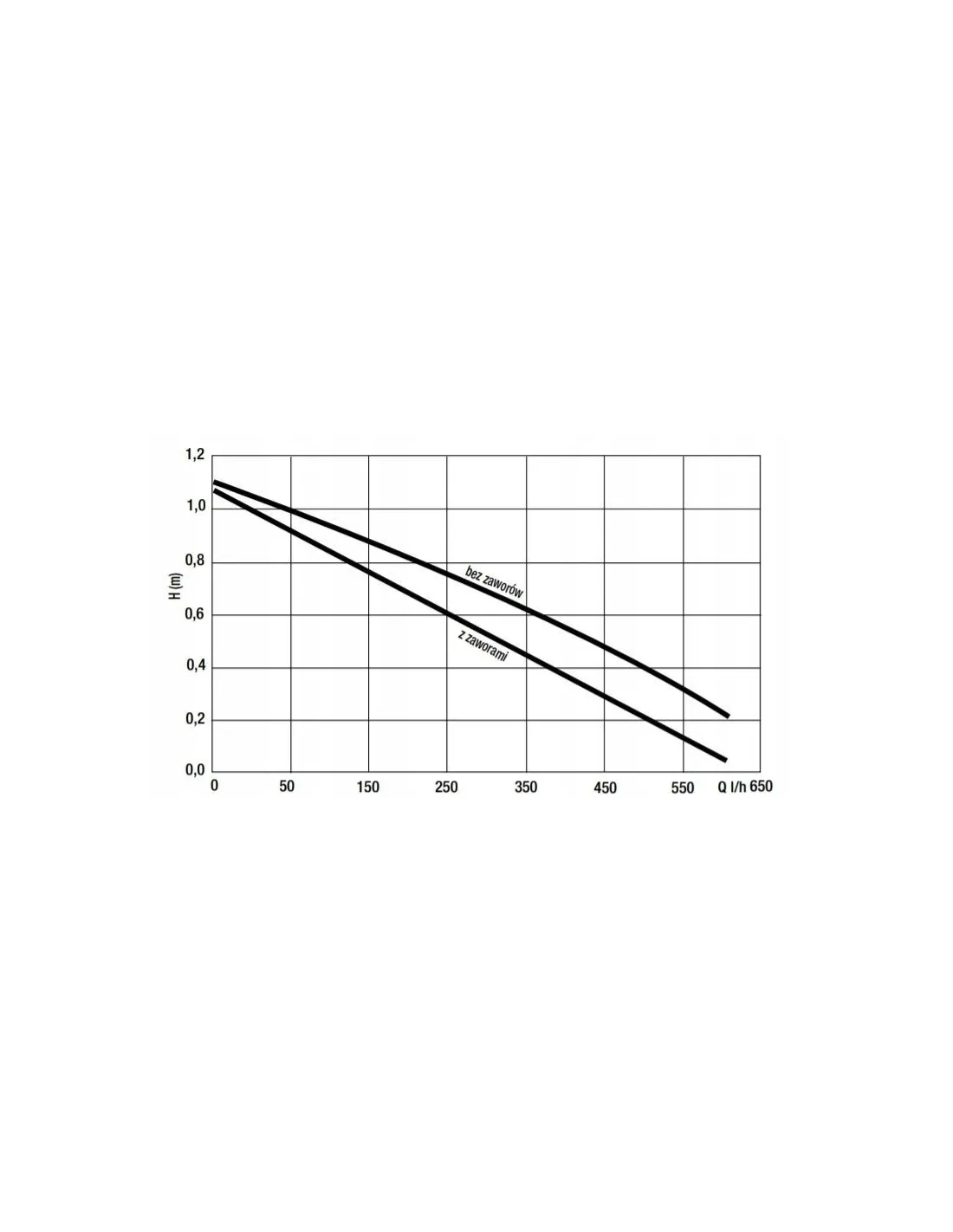 - Zakres wydajności: od 0 do 0,6 m3/h przy wysokości podnoszenia do 1,1 m