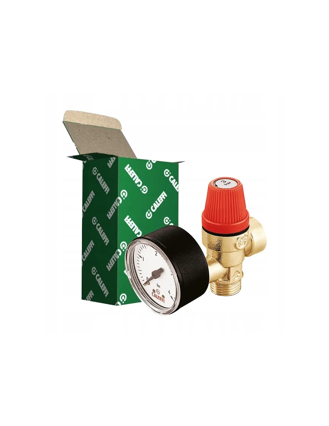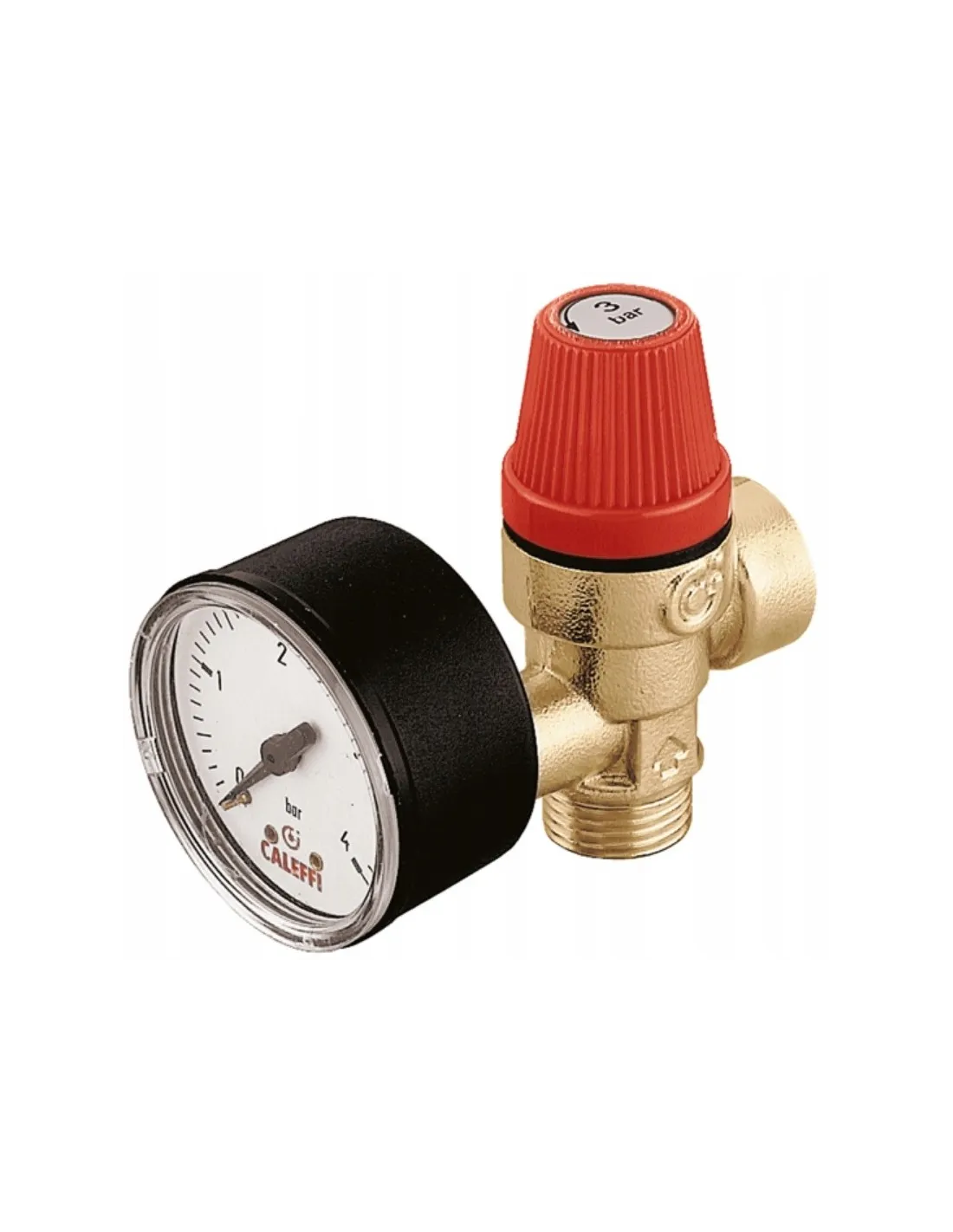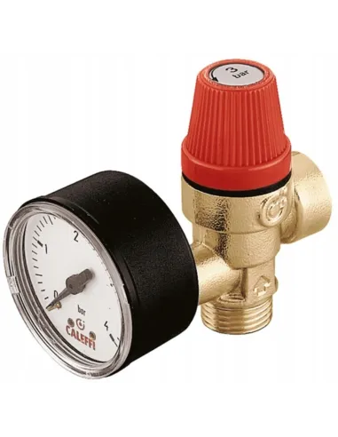 Zawór bezpieczeństwa. Przyłącza z gwintem zewnętrznym i wewnętrznym z manometrem 1/2\ 3 bar CALEFFI