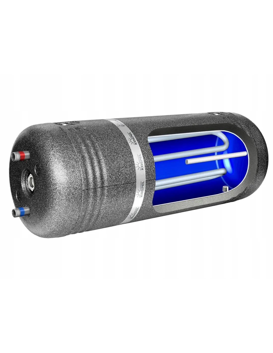 Wymiennik poziomy z wężownicą idealnie nadaje się do współpracy z kotłami grzewczymi. Dzięki zastosowaniu rozpraszacza wody ograniczysz mieszanie się wody ciepłej z zimną, tym samym zyskasz optymalny rozkład temperatury w zbiorniku. Wymiennik wyposażony jest we wskaźnik temperatury wody w zasobniku.