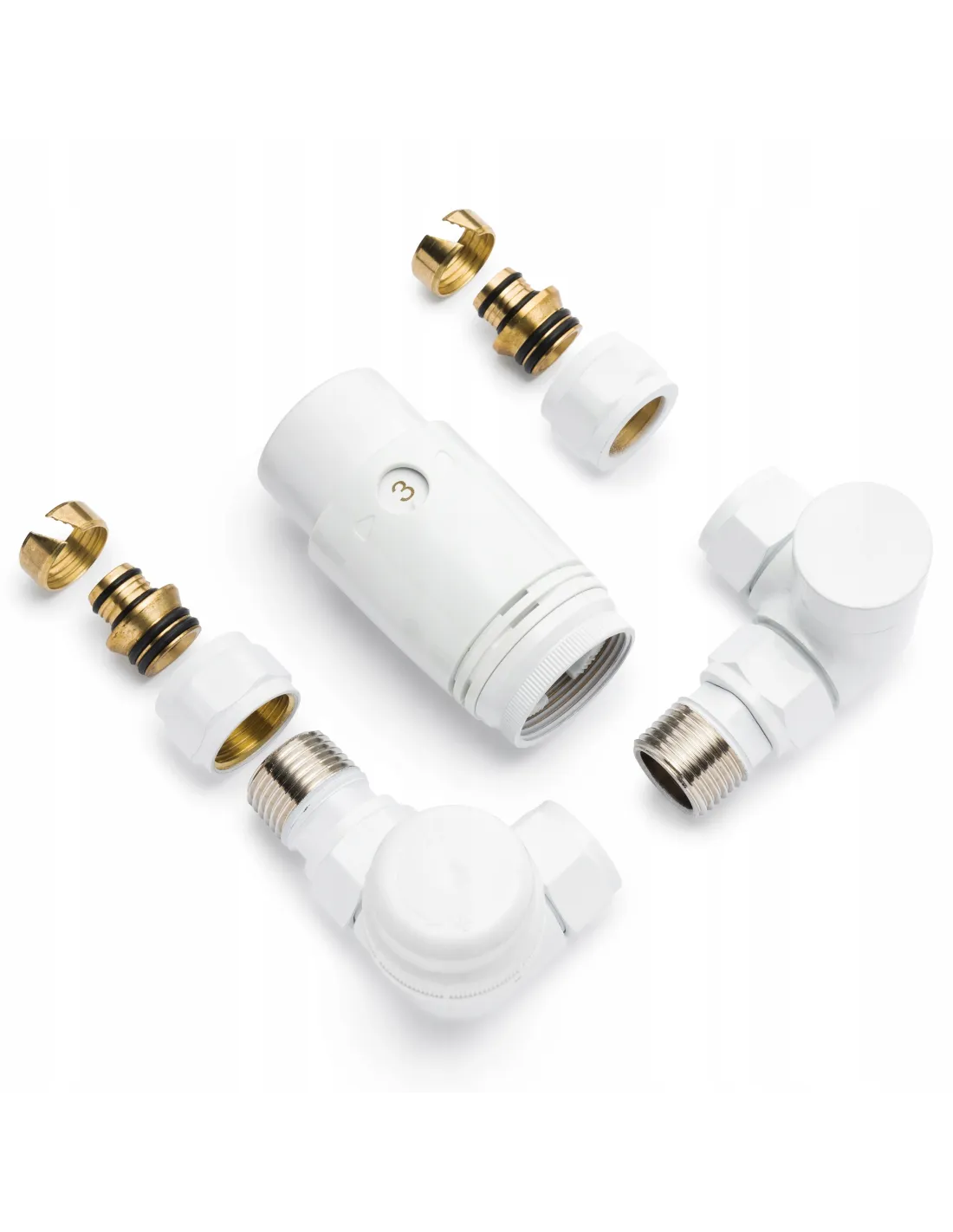KOMPLET TERMOSTATYCZNY OSIOWY BIAŁY ZAWORY