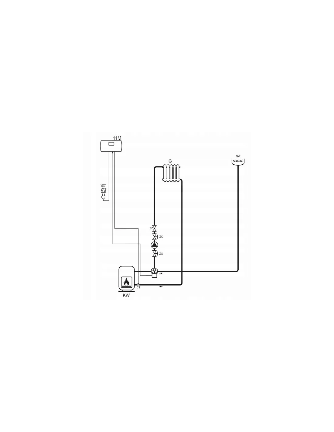 - Urządzenie przeznaczone do współpracy z zaworem 3-drożnym z siłownikiem oraz pompą obiegową c.o. (siłownik mieszacza musi być wyposażony w wyłączniki krańcowe).