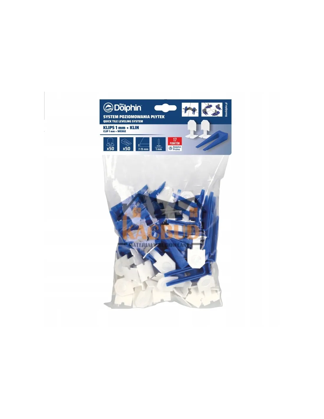Blue Dolphin Zestaw do poziomowania płytek klips 1mm 50szt. + klin 50szt.