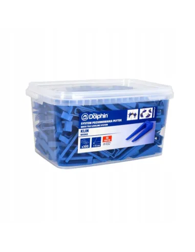 • Kliny do Systemu Poziomowania Płytek Blue Dolphin w opakowaniu z 300 sztukami.