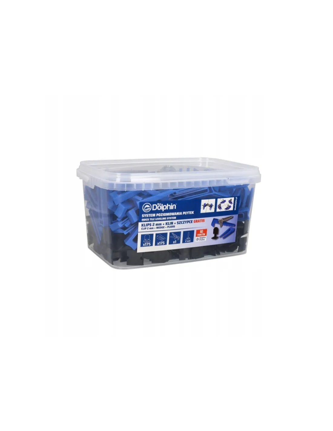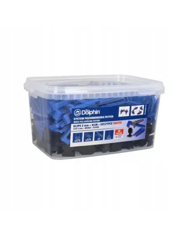 Blue Dolphin System poziomowania płytek klips 2mm + klin + szczypce to kompletny zestaw, który ułatwia precyzyjne układanie płytek o grubości 7-15mm.