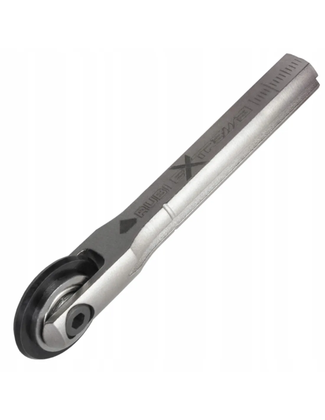 Kółka w nożach tnących EXTREME są wykonane z węglika spiekanego o najwyższej jakości, specjalnie powlekanego warstwą węglika tytanu. Dzięki temu kółka tnące RUBI EXTREME są bardziej odporne na ścieranie powierzchniowe podczas użytkowania. Dodatkowo kółka tnące EXTREME są zamontowane na łożysku, które całkowicie eliminuje tarcie pomiędzy kółkiem, a osią, na której jest osadzone. To połączenie przekłada się na odczuwalnie najpłynniejszą pracę kółka tnącego EXTREME, zdecydowanie lepszą od pozostałych, a żywotność noża wynosi 300% w porównaniu do noży tnących serii SILVER (w tych samych warunkach użytkowania).